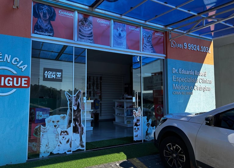 Além dos serviços veterinários, nossa clínica também oferece uma seleção completa de produtos para cães e gatos, incluindo rações, brinquedos, roupas, camas e coleiras. Aqui você encontra tudo o que seu pet precisa em um só lugar.
